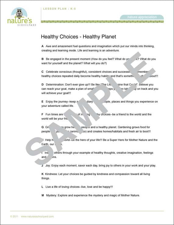 A list of healthy choices from A - Z teaching students ideas and actions they can make to ensure a healthy planet.