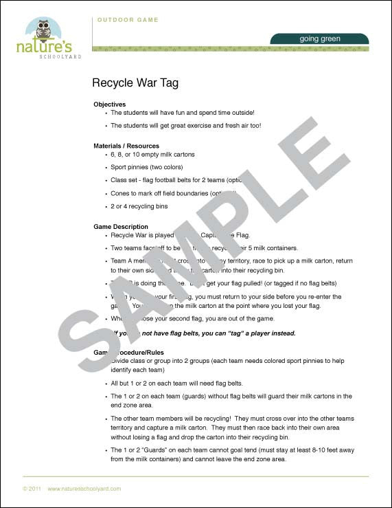 This is the ultimate outdoor game. This game is a lot like “Capture the Flag” but with a Green twist!