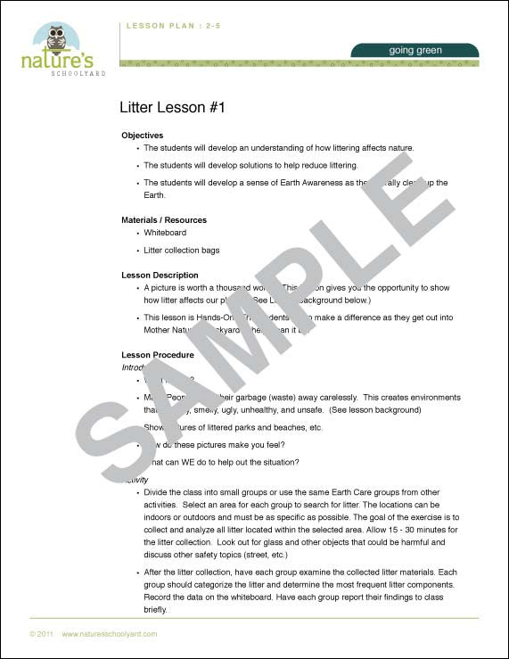 LESSON: This activity allows the child (or students) the opportunity to directly clean up the planet and study the types of trash that people throw on the ground. Should it be recycled? Why do people litter? What can we do to help the situation?