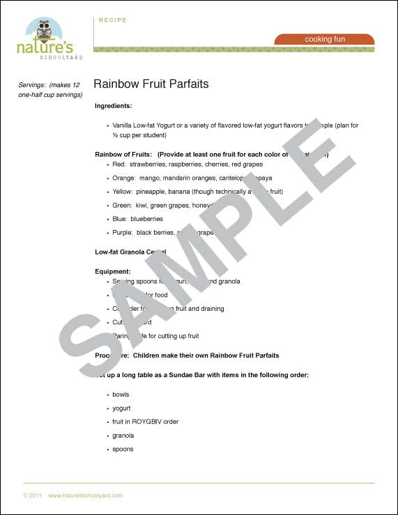 Rainbow Fruit Parfaits are a fun snack to taste a real rainbow of fruit flavors. Encourage children to eat a rainbow of fruit by providing bowls of fruits for each color of the rainbow and different flavored yogurts. Students will layer yogurt and different fruits for a delicious, healthy snack. Try topping it with Tooty Fruity Nutty Granola for delicious crunch!